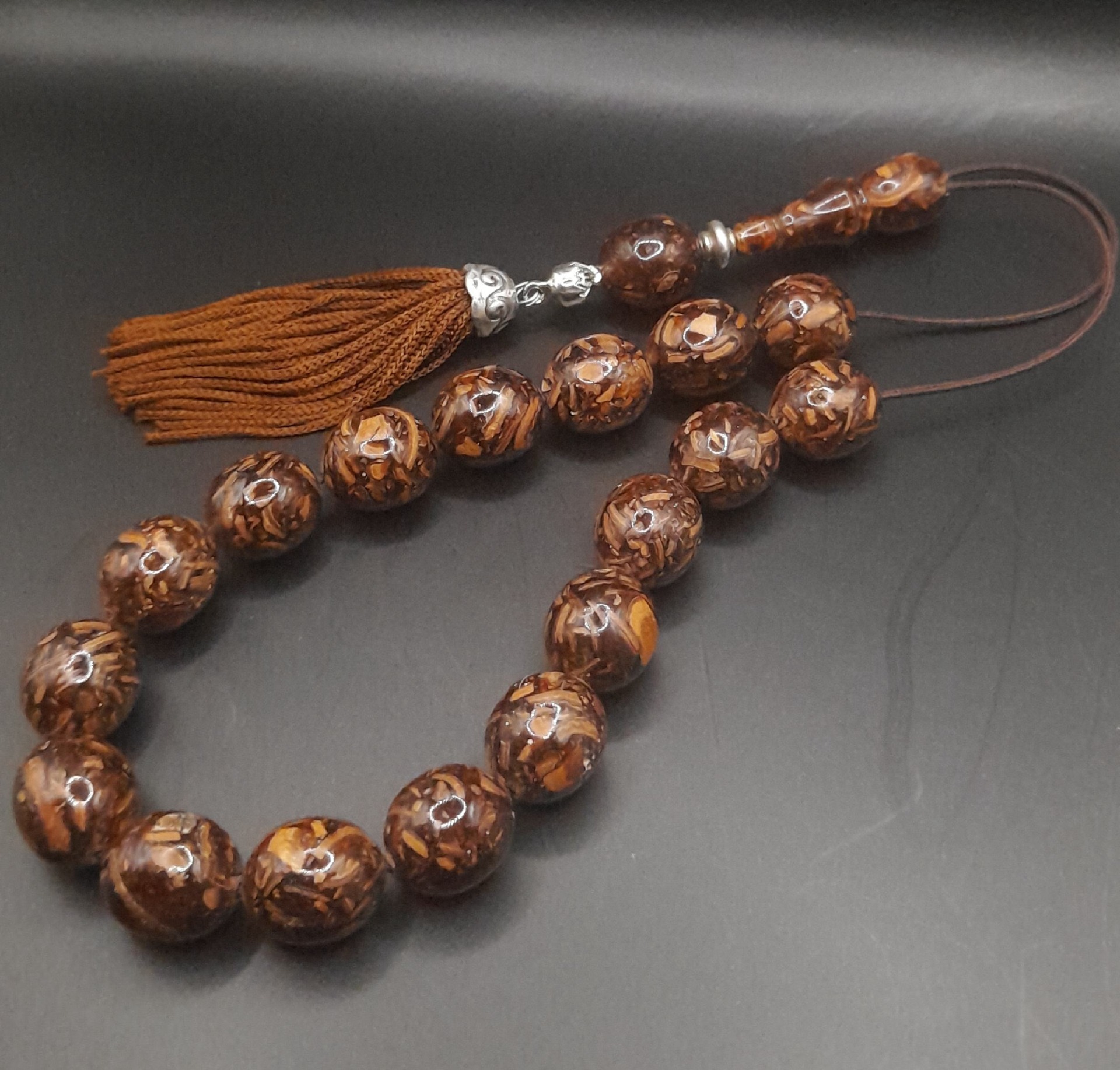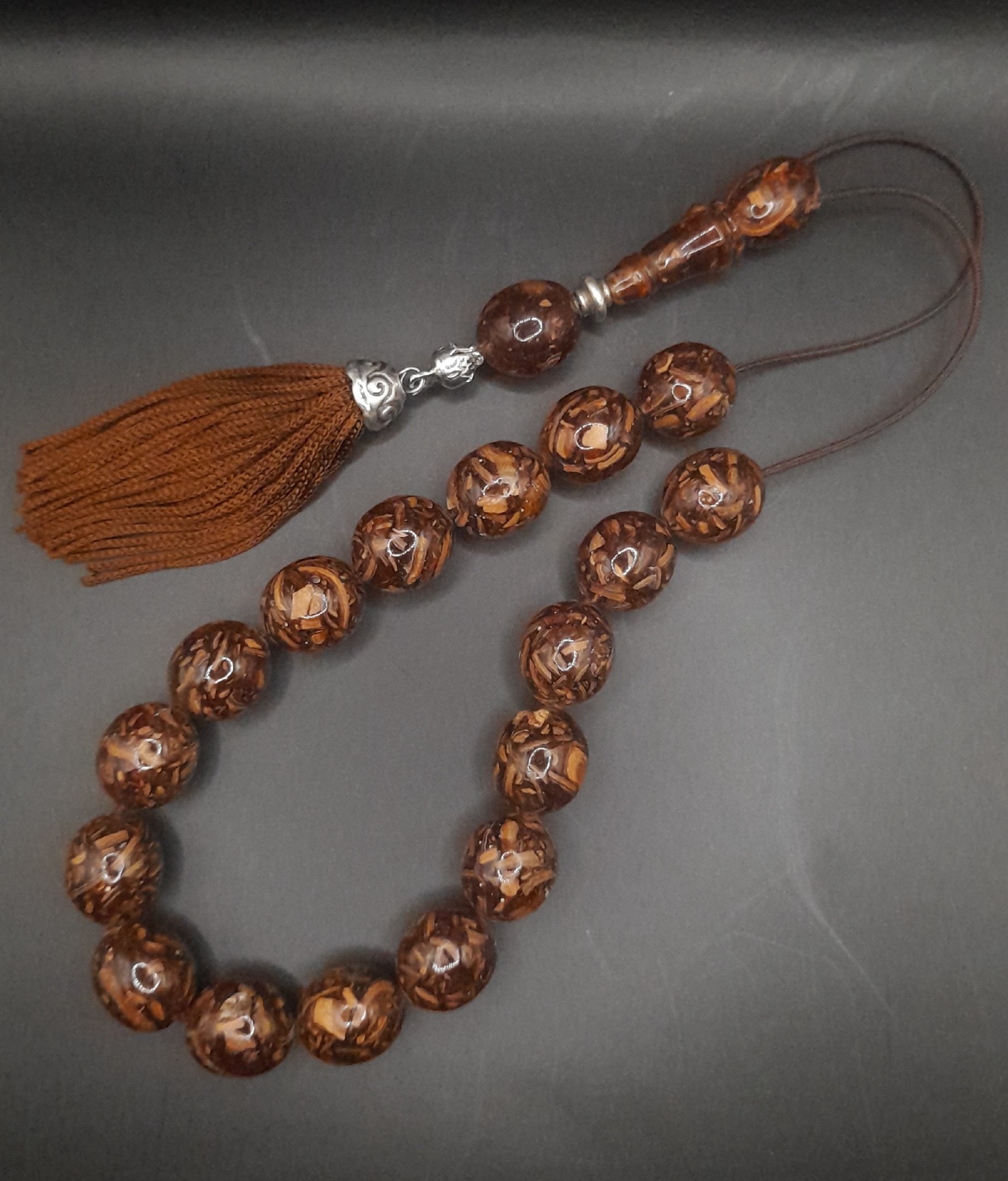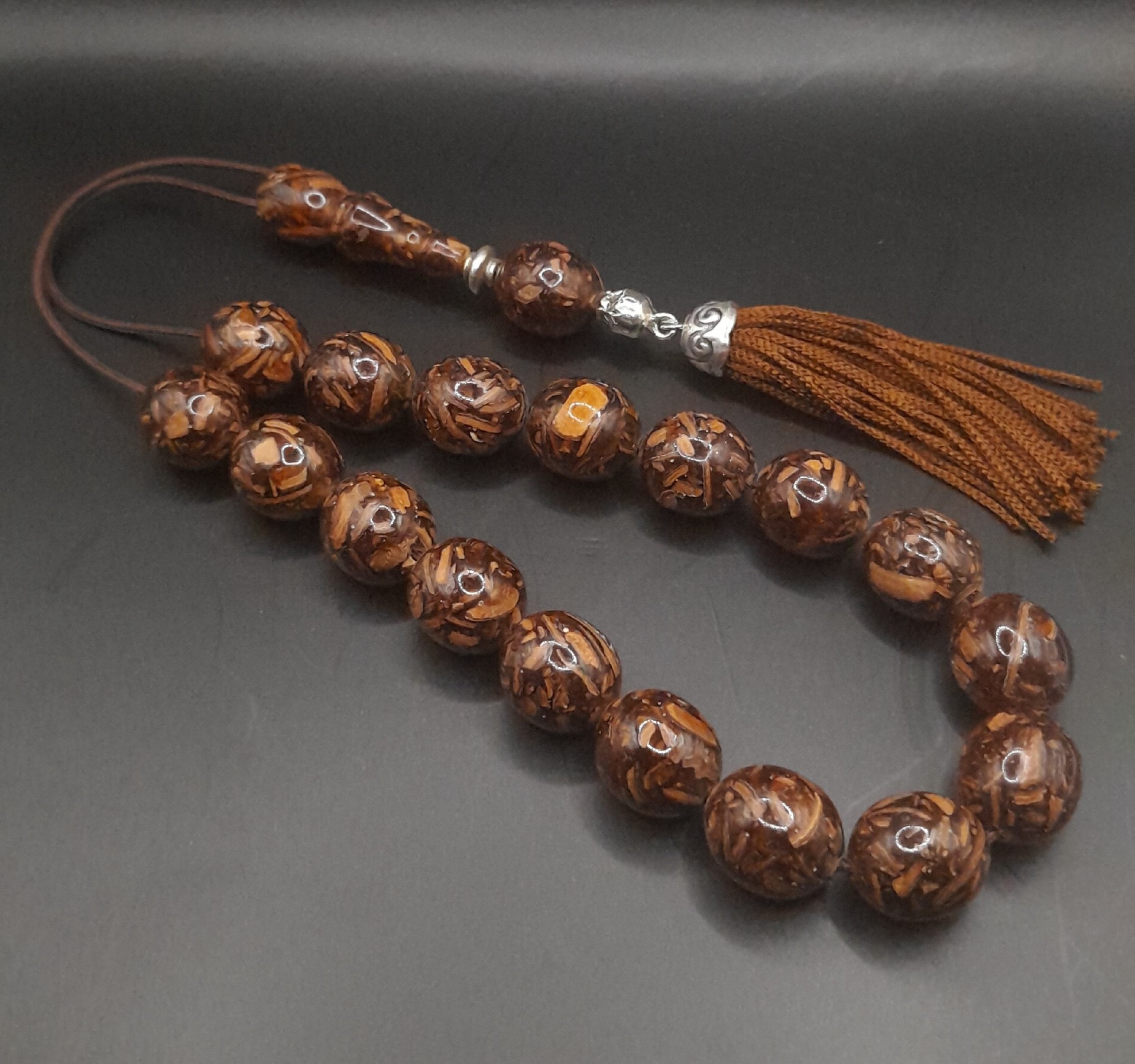Κομπολόι από αρωματική κανέλα συμπιεσμένη με 17 χάντρες.