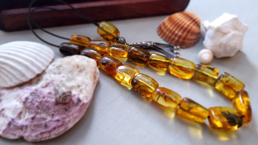Κεχριμπάρι Ρωσίας με ασημένια φούντα.