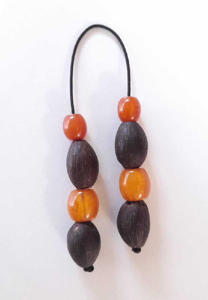 Μπεγλέρι από ρητίνη με σκόνη κεχριμπαριού. Συνολικόμήκος: 22cm (με όλο το σχοινάκι) Βάρος: 20g Πάχος χαντρών: 14mm Υψος χαντρών: 15mm