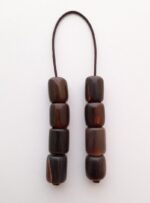 Μπεγλέρι από έβενο.  Συνολικόμήκος: 23cm (με όλο το σχοινάκι) Βάρος: 16g Πάχος χαντρών: 12mm Υψος χαντρών: 16mm