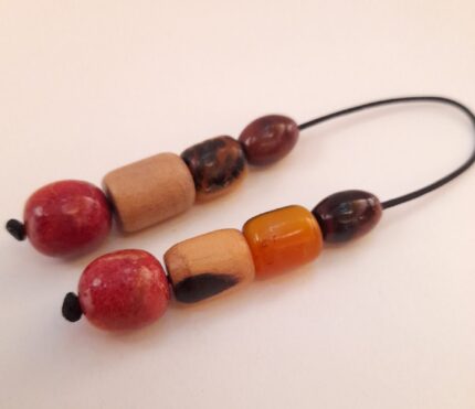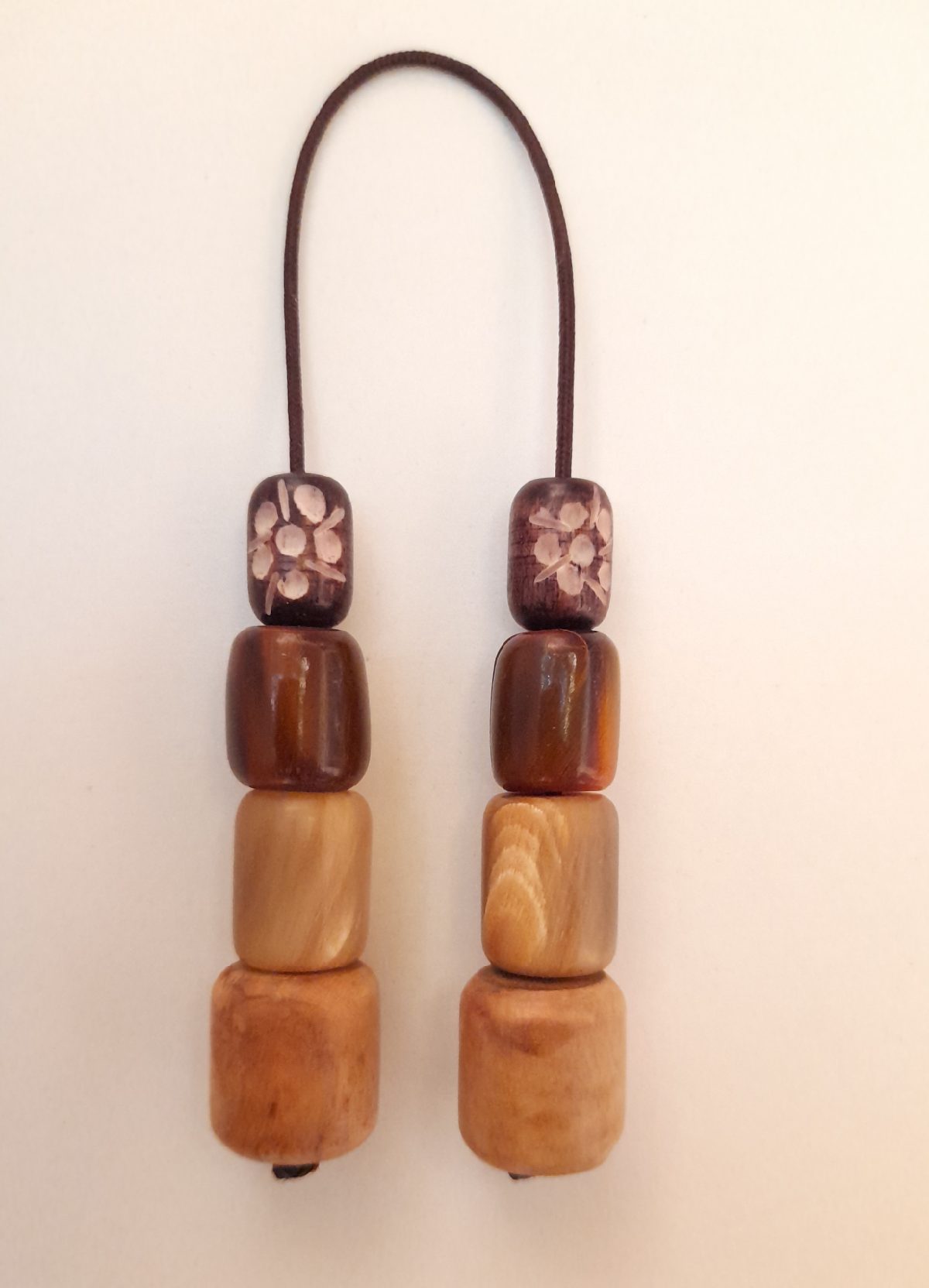 Μπεγλέρι από αρωματικό Σαν Ζοζέφ και ρητίνη. Συνολικό μήκος: 21cm (με όλο το σχοινάκι) Βάρος: 10g Πάχος χαντρών: 12mm, 11mm
