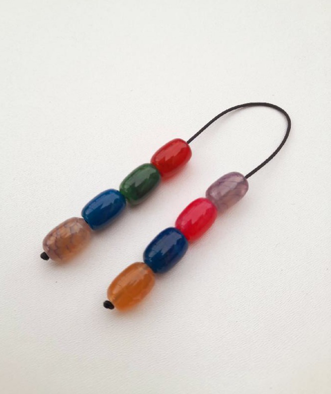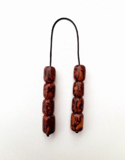 Μπεγλέρι από καθαρή ρητίνη.  Συνολικό μήκος: 21cm (με όλο το σχοινάκι) Βάρος: 15g Πάχος χαντρών: 13mm  Υψος χάντρας:14mm