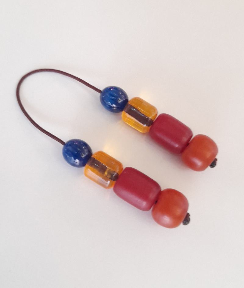 Μπεγλέρι από χρωματιστές ρητίνες. Συνολικό μήκος: 22cm (με όλο το σχοινάκι) Βάρος: 17g Πάχος χαντρών: 18mm, 15mm, 13mm, 13mm  Υψος