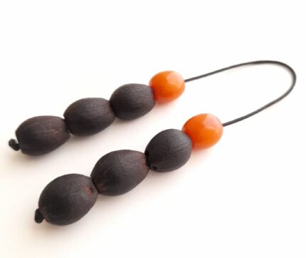 Μπεγλέρι από αρωματικό Σαν Ζοζέφ και ρητίνη. Συνολικό μήκος: 21cm (με όλο το σχοινάκι) Βάρος: 10g Πάχος χαντρών: 12mm, 11mm