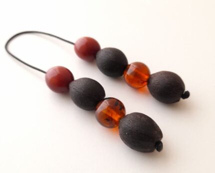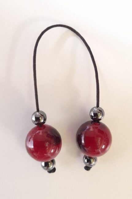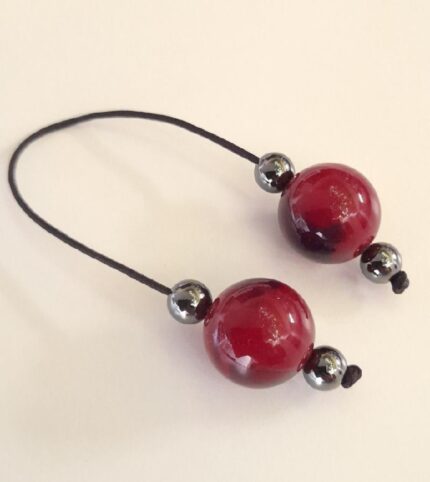 Μπεγλέρι από ρητίνη και αιματίτη.  Συνολικό μήκος: 19cm (με όλο το σχοινάκι) Βάρος: 14g Πάχος χαντρών: 20mm, 08mm Υψος χαντρών: