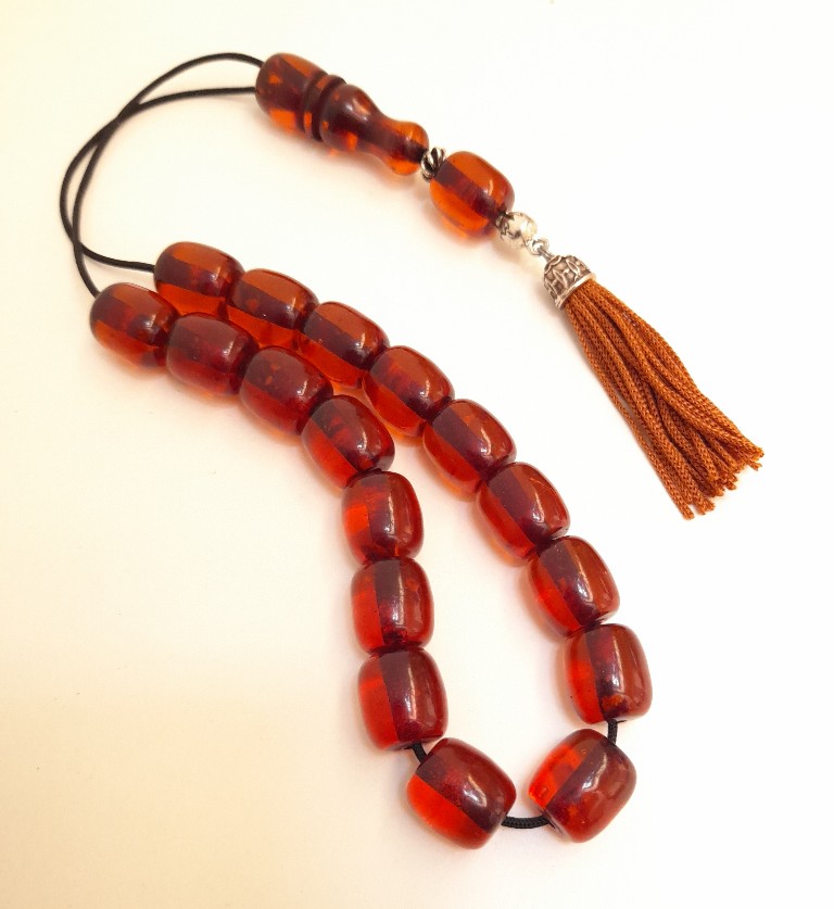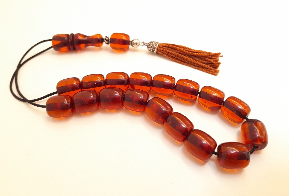 Ρητίνη με 33 χάντρες Βάρος: 62g (με τη φούντα)Μήκος: 37cm (χωρίς τη φούντα)Πάχος χάντρας: 13mmΥψος χάντρας: 13mm