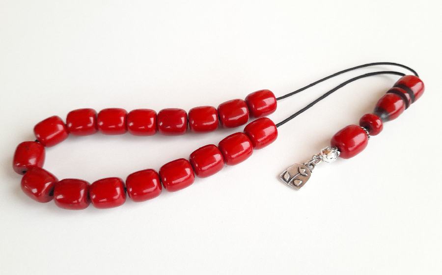 Ρητίνη με 33 χάντρες* Βάρος: 60g (με τη φούντα)Μήκος: 35cm (χωρίς τη φούντα)Πάχος χάντρας: 13mmΥψος χάντρας: 12mm *Με σκόνη κεχριμπαριού