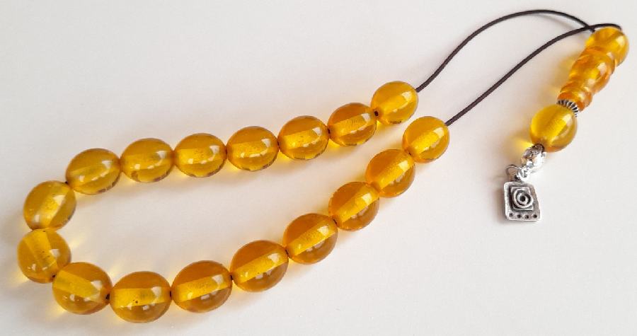 Ρητίνη με 17 χάντρες Βάρος: 52g (με τη φούντα)Μήκος: 27cm (χωρίς τη φούντα)Πάχος χάντρας: 16mmΥψος χάντρας: 14mm