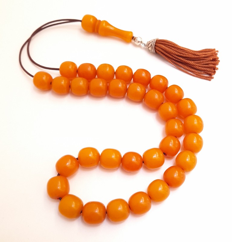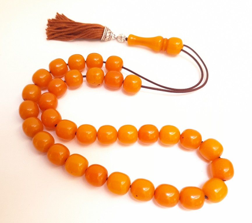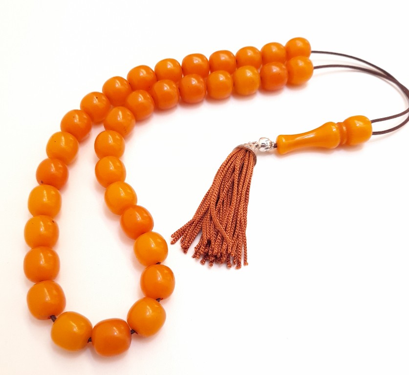 Ρητίνη με 33 χάντρες Βάρος: 66g (με τη φούντα)Μήκος: 39cm (χωρίς τη φούντα)Πάχος χάντρας: 13mmΥψος χάντρας: 13mm
