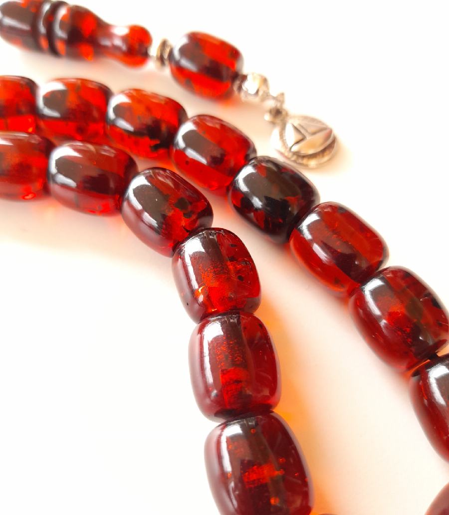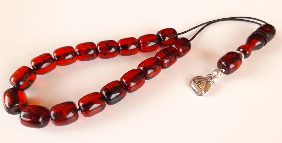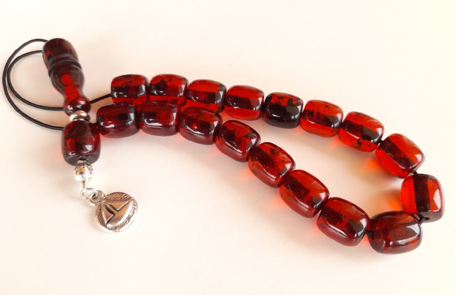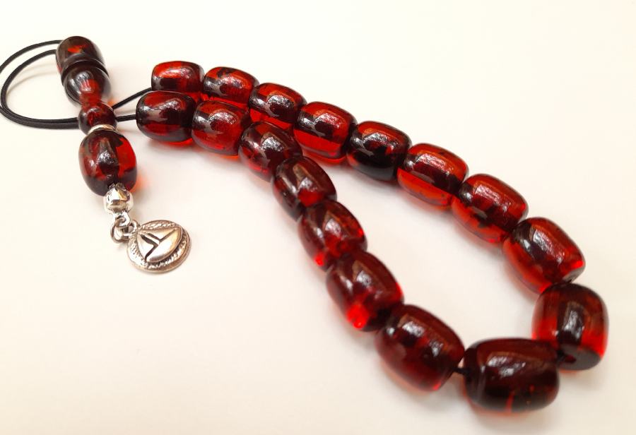 Ρητίνη με 33 χάντρες* Βάρος: 63g (με τη φούντα)Μήκος: 36cm (χωρίς τη φούντα)Πάχος χάντρας: 13mmΥψος χάντρας: 12mm *Με σκόνη κεχριμπαριού