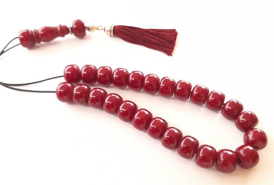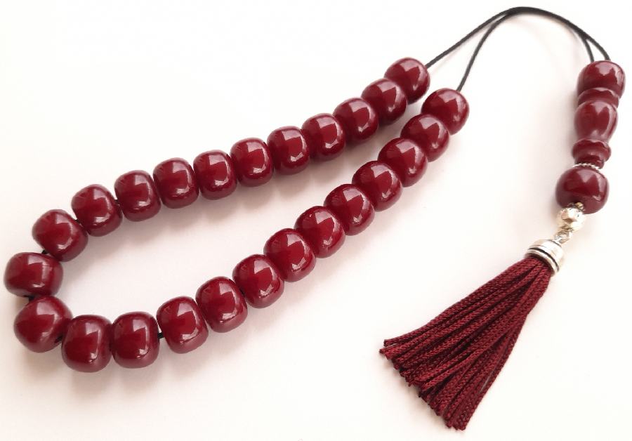 Ρητίνη με 33 χάντρες* Βάρος: 63g (με τη φούντα)Μήκος: 36cm (χωρίς τη φούντα)Πάχος χάντρας: 13mmΥψος χάντρας: 12mm *Με σκόνη κεχριμπαριού