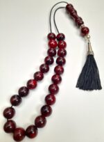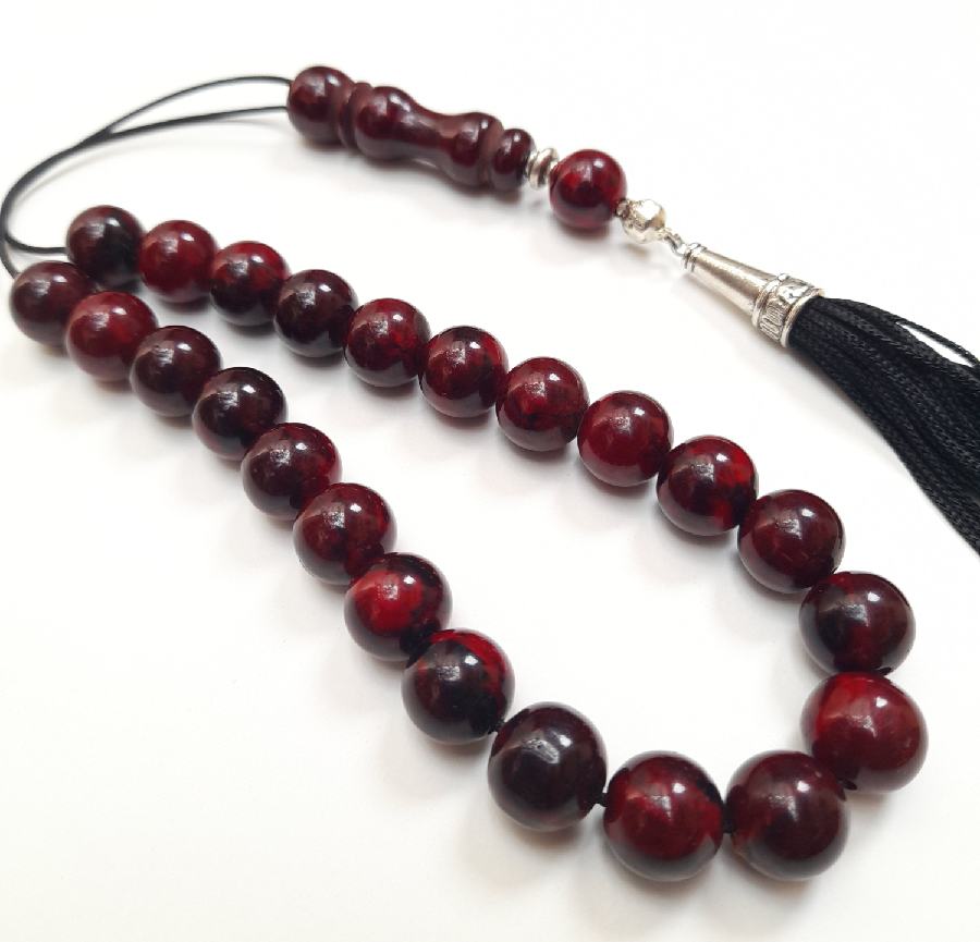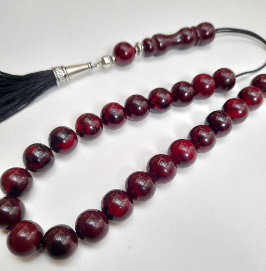 Ρητίνη με 33 χάντρες* Βάρος: 63g (με τη φούντα)Μήκος: 36cm (χωρίς τη φούντα)Πάχος χάντρας: 13mmΥψος χάντρας: 12mm *Με σκόνη κεχριμπαριού
