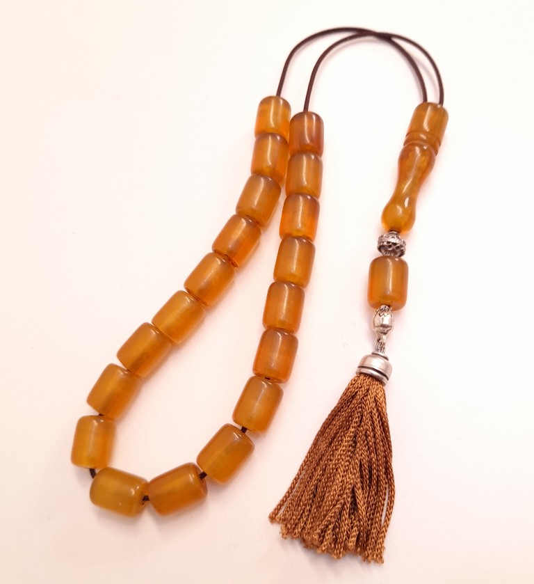 Ρητίνη με 33 χάντρες Βάρος: 66g (με τη φούντα)Μήκος: 39cm (χωρίς τη φούντα)Πάχος χάντρας: 13mmΥψος χάντρας: 13mm