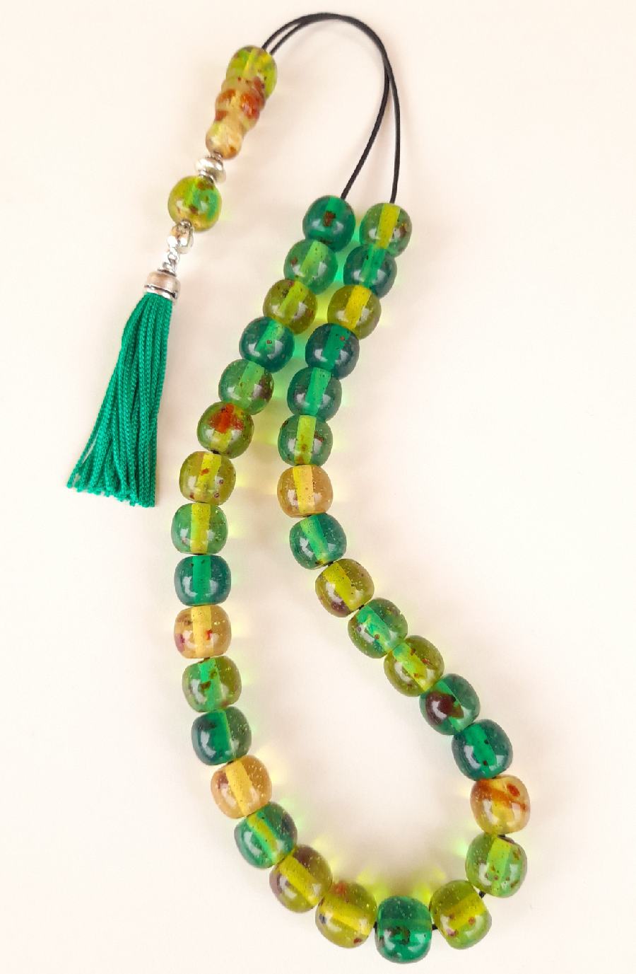Ρητίνη με 33 χάντρες Βάρος: 67g (με τη φούντα)Μήκος: 38cm (χωρίς τη φούντα)Πάχος χάντρας: 13mmΥψος χάντρας: 13mm