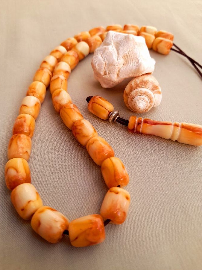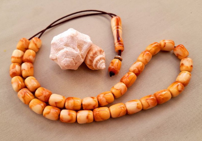 Ρητίνη με 33 χάντρες Βάρος: 66g (με τη φούντα)Μήκος: 39cm (χωρίς τη φούντα)Πάχος χάντρας: 13mmΥψος χάντρας: 13mm