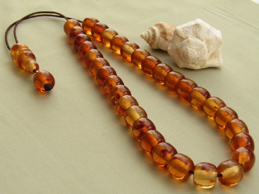 Ρητίνη με 33 χάντρες Βάρος: 66g (με τη φούντα)Μήκος: 39cm (χωρίς τη φούντα)Πάχος χάντρας: 13mmΥψος χάντρας: 13mm