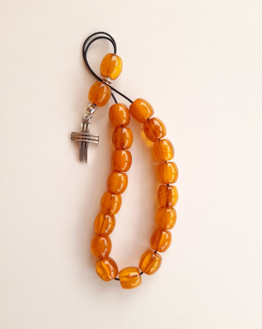 Ρητίνη με 19 χάντρες Βάρος: 35g (με τη φούντα)Μήκος: 26cm (χωρίς τη φούντα)Πάχος χάντρας: 14mmΥψος χάντρας: 13mm