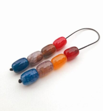 Μπεγλέρι από  αχάτη ταγέ, ίασπη, αχάτη, κουάρτζ και αιματίτη. Συνολικό μήκος: 21cm (με όλο το σχοινάκι) Βάρος: 21g Πάχος χαντρών: