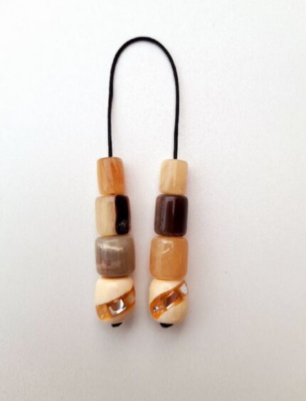 Μπεγλέρι από διάφορα κέρατα.  Συνολικό μήκος: 22cm (με όλο το σχοινάκι) Βάρος: 15g Πάχος χαντρών: 13mm Υψος χάντρας:15mm