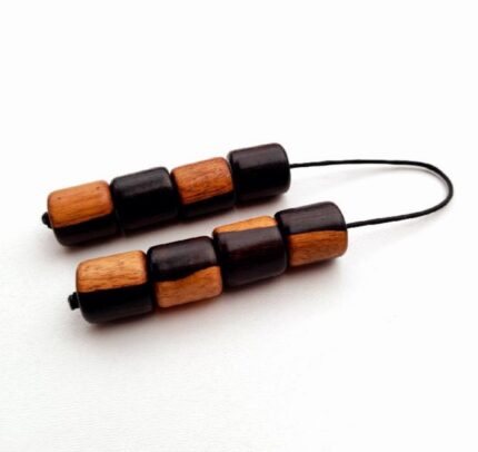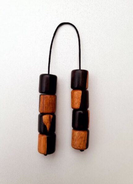 Μπεγλέρι από ξύλο ελιάς, έβενο και κανέλα. Συνολικό μήκος: 22cm (με όλο το σχοινάκι) Βάρος: 18g Πάχος χαντρών: 15mm x